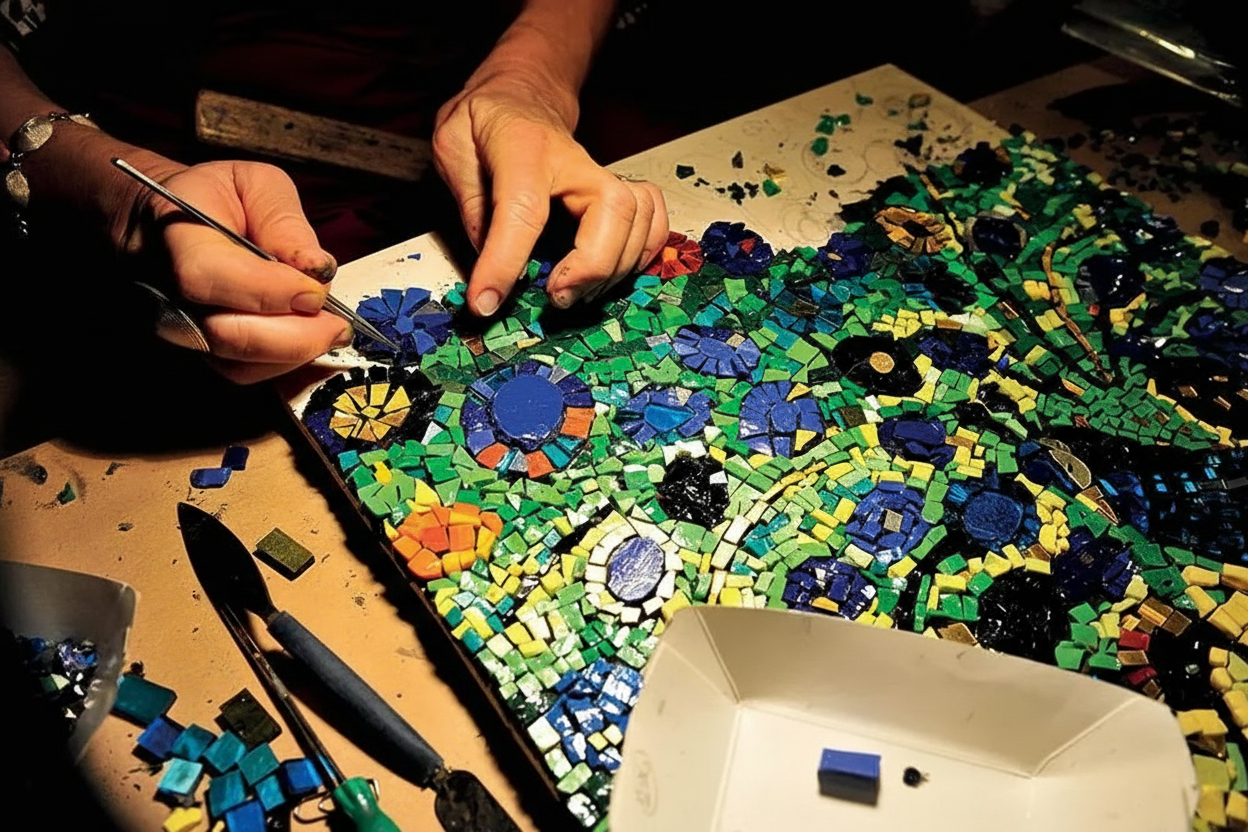 During the visit, participants will learn how the small pieces that compose a mosaic—known as tesserae—are still produced and assembled by hand. The artisan will demonstrate how each tiny element is carefully cut and positioned to create complex images and decorative patterns.