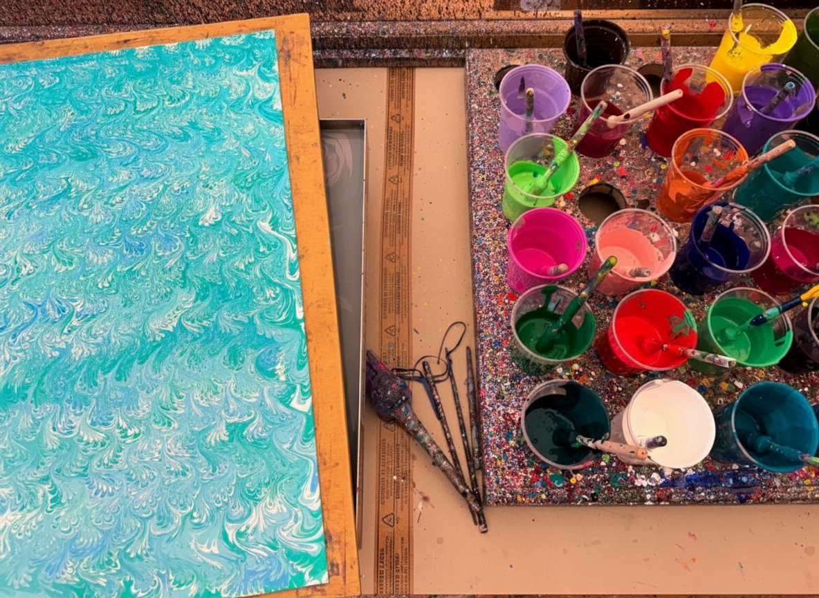 • Demonstration of traditional paper marbling techniques
